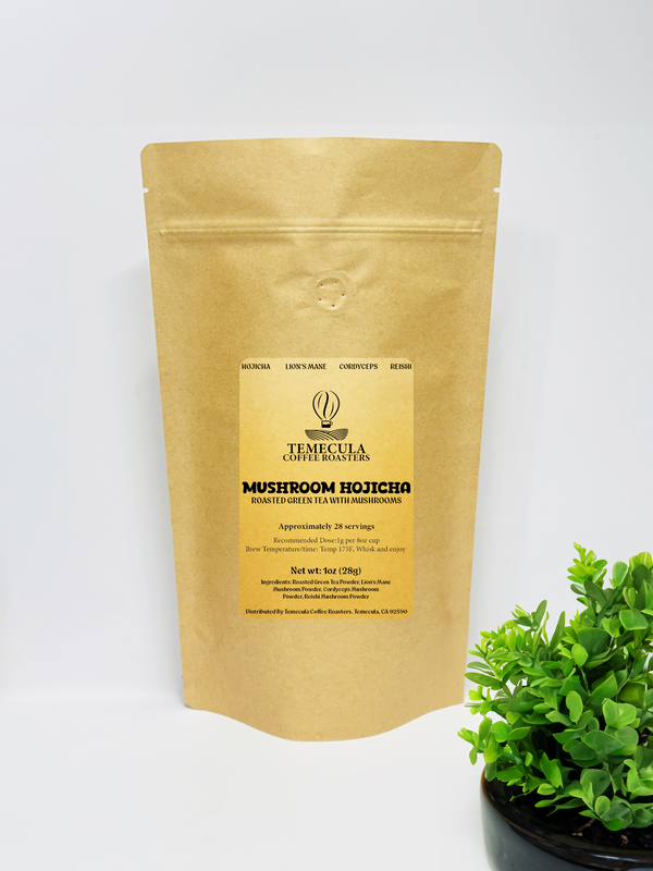 Enjoy the comforting, roasted flavor of authentic Japanese Hojicha, a green tea gently roasted to bring out its smooth, nutty, and naturally sweet character — perfectly balanced with our signature Mushroom Blend of Lion’s Mane, Cordyceps, and Reishi.