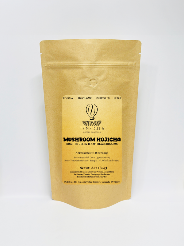 Enjoy the comforting, roasted flavor of authentic Japanese Hojicha, a green tea gently roasted to bring out its smooth, nutty, and naturally sweet character — perfectly balanced with our signature Mushroom Blend of Lion’s Mane, Cordyceps, and Reishi.